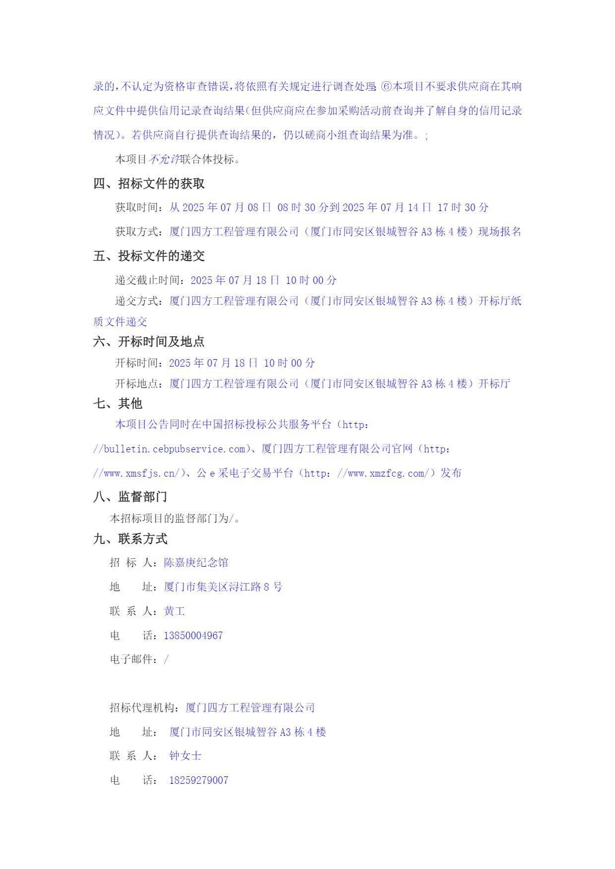 厦门四方-竞争性磋商-“烽火侨心”展览制作及相关配套采购公告