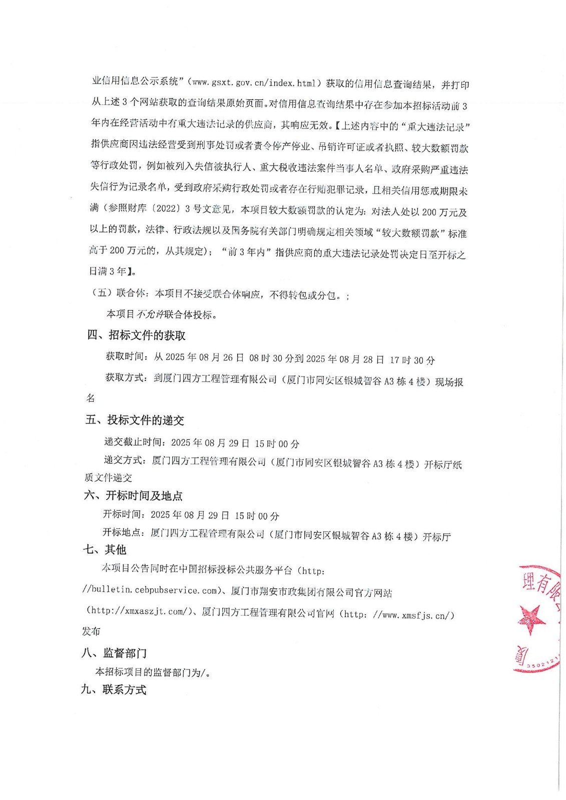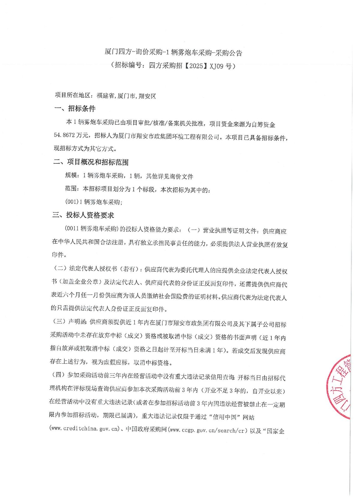 厦门四方-询价采购-1辆雾炮车采购-采购公告
